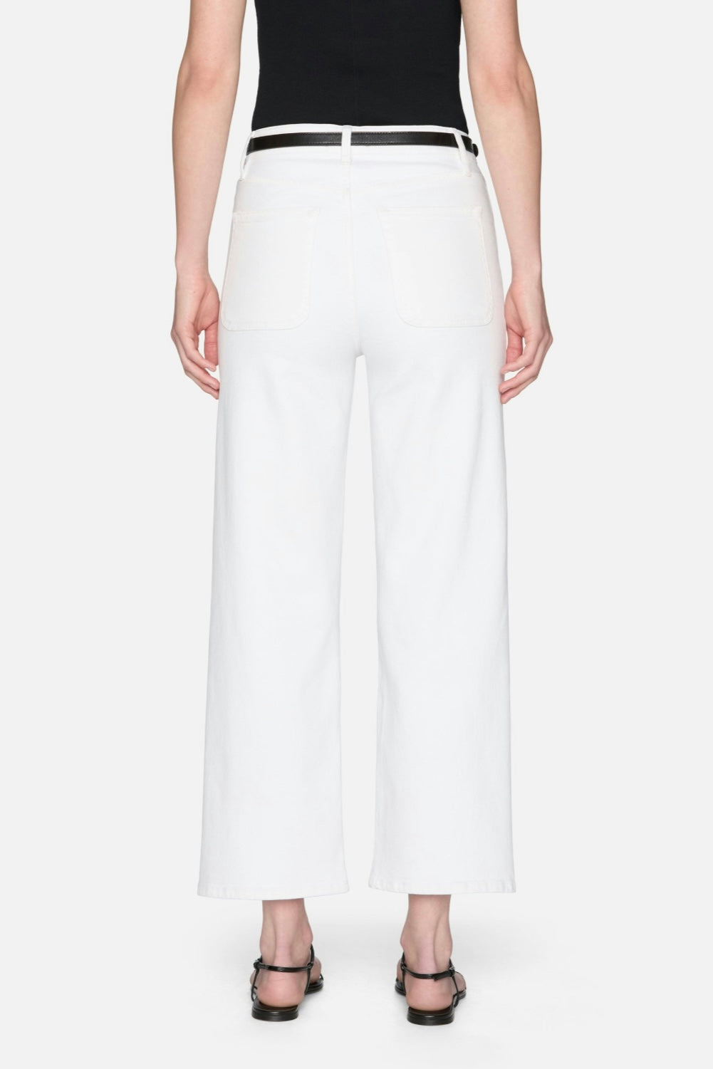 The Wide just got better. Equipped with utility-inspired pockets, this ultra high-rise jean flaunts a wearable wide leg that's cut in the softest white denim with a hint of stretch. The slim wide leg embodies workwear style, anchored by a fitted waist and clean, cropped trim.