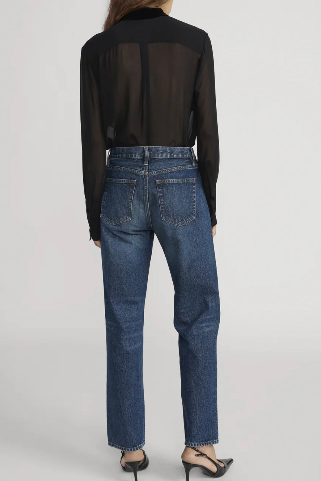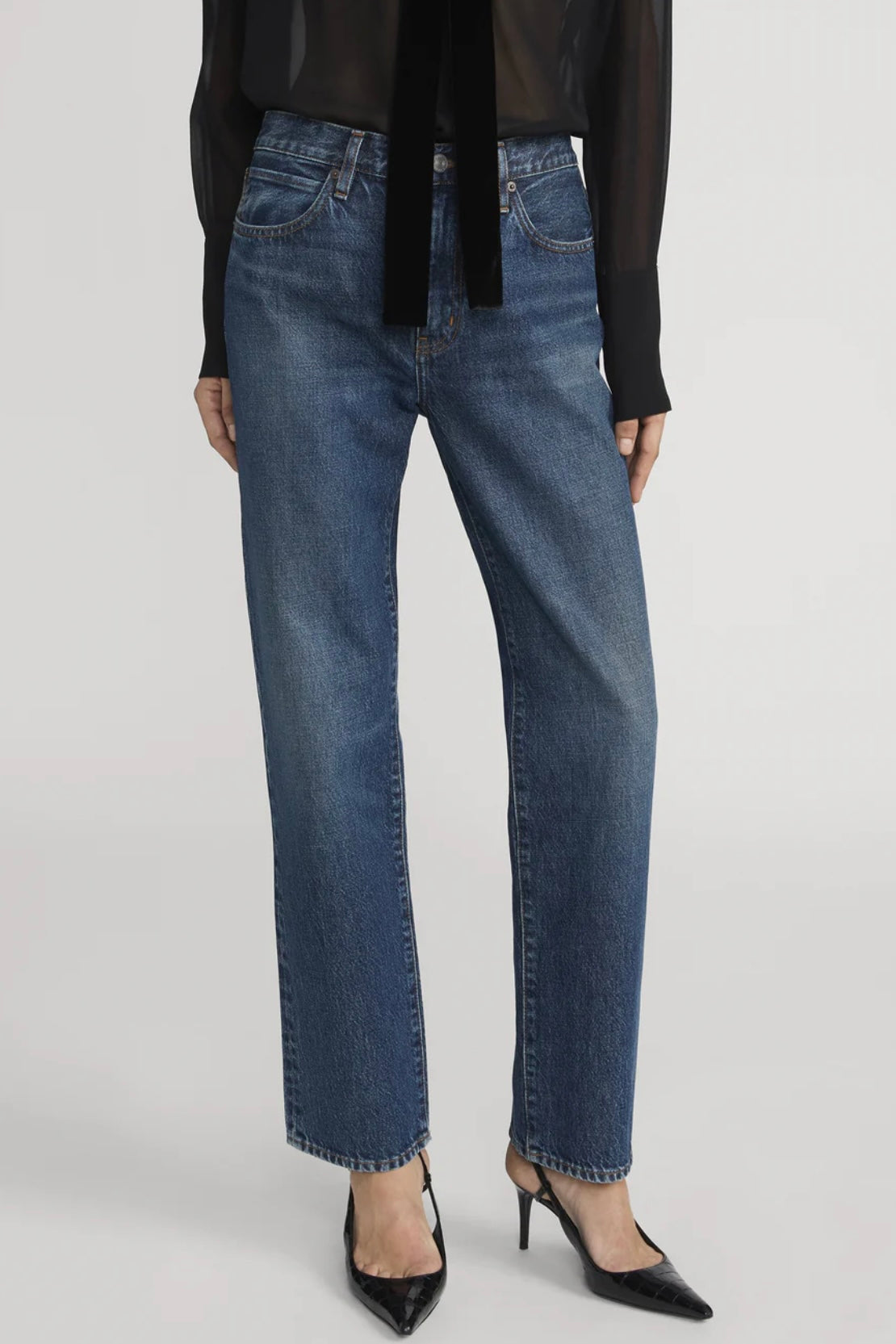 A cleaned-up rendition of a relaxed jean, this straight-leg pair "hangs" from a mid-rise waist with just enough room through the hip and thigh for a fluid fit and feel. A tailored yet effortless jean that strikes the perfect balance.