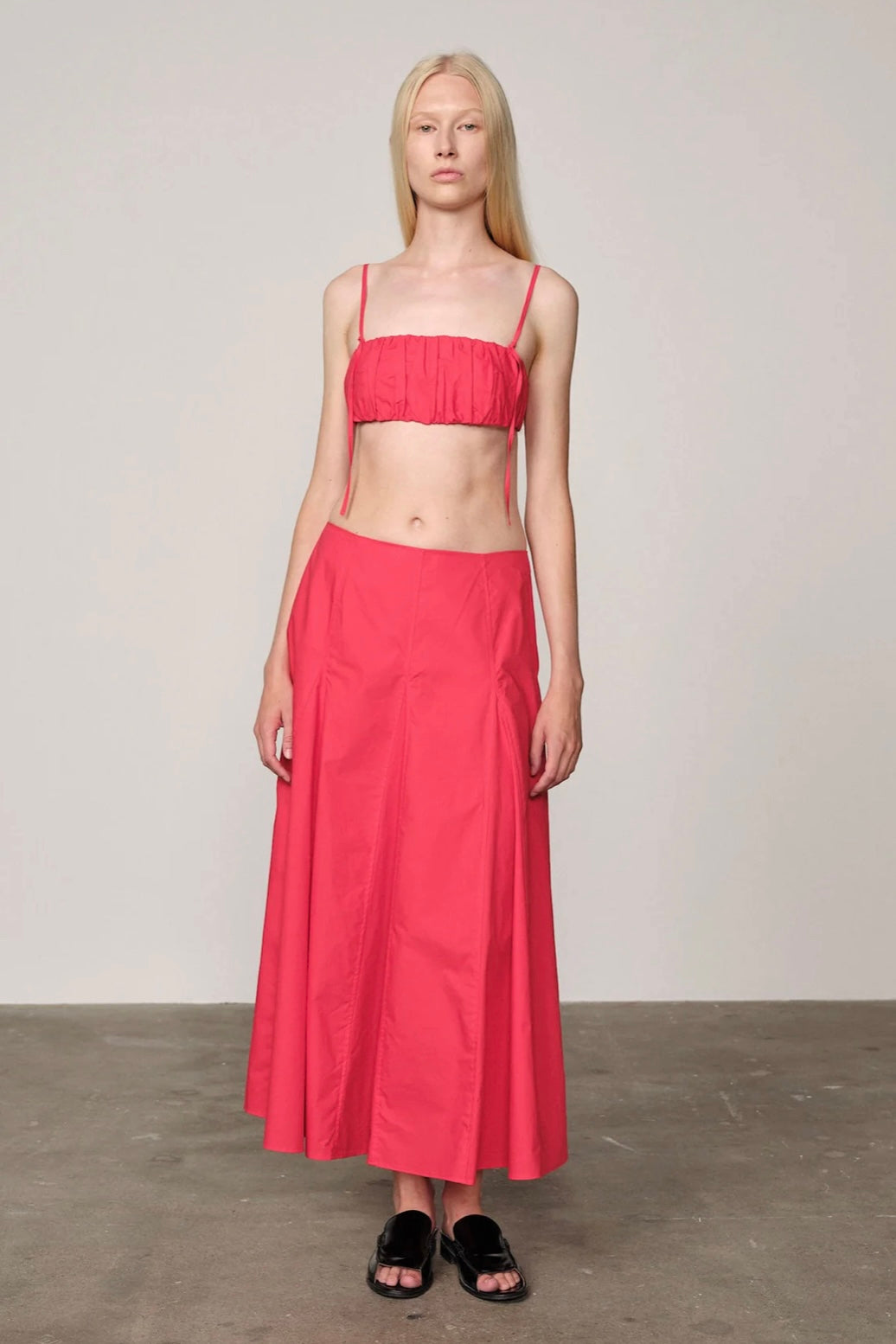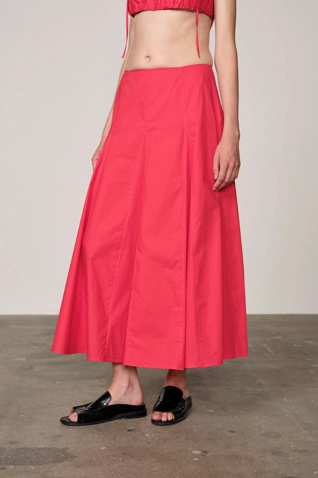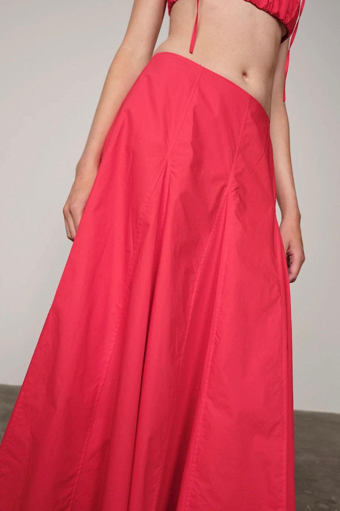 A structured cotton skirt with flattering volume and mid-length cut. Designed for ease and polish in equal measure.
